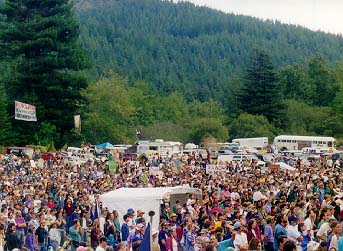 The day featured music, speakers, and a peaceful march. Thousands helped to place protective sandbags around the home of Stafford, Calif. resident Michael O'Neal, which is endangered by impending mudslides from a slope damaged by Pacific Lumber's excessive logging.